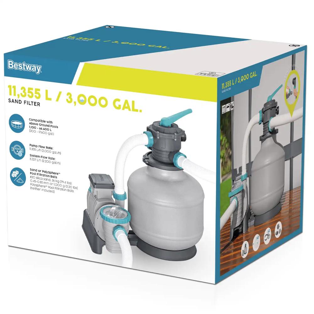 BESTWAY FLOWCLEAR 3000 GAL SAND FILTER PUMP: Helps to maintain a steady flow of clean, clear and hygienic water in your swimming pool.