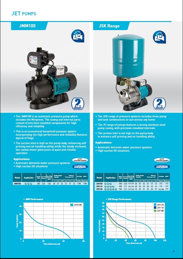 With three different pump and tank options, inbuilt thermal motor protection, stainless steel casing, and precision moulded internals there is a JSK pump combination to suit your households needs.